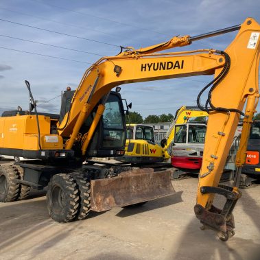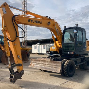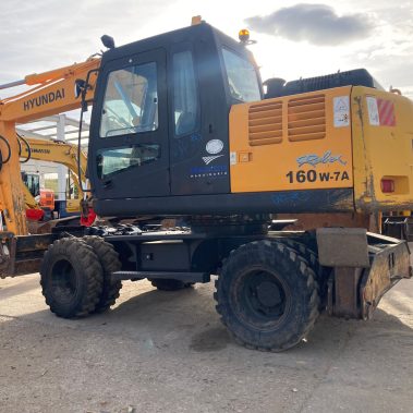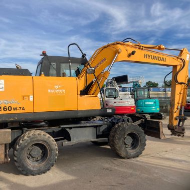 Giratoria de Ruedas Gomas Hyundai 160. 10500 Horas reales. Matriculada. Bomba recién reparada (con factura y garantía). Bien tratada. Sin holguras ni soldaduras. Vía hidráulica para martillo, A\C Aire Acondicionado. Enganche rápido.